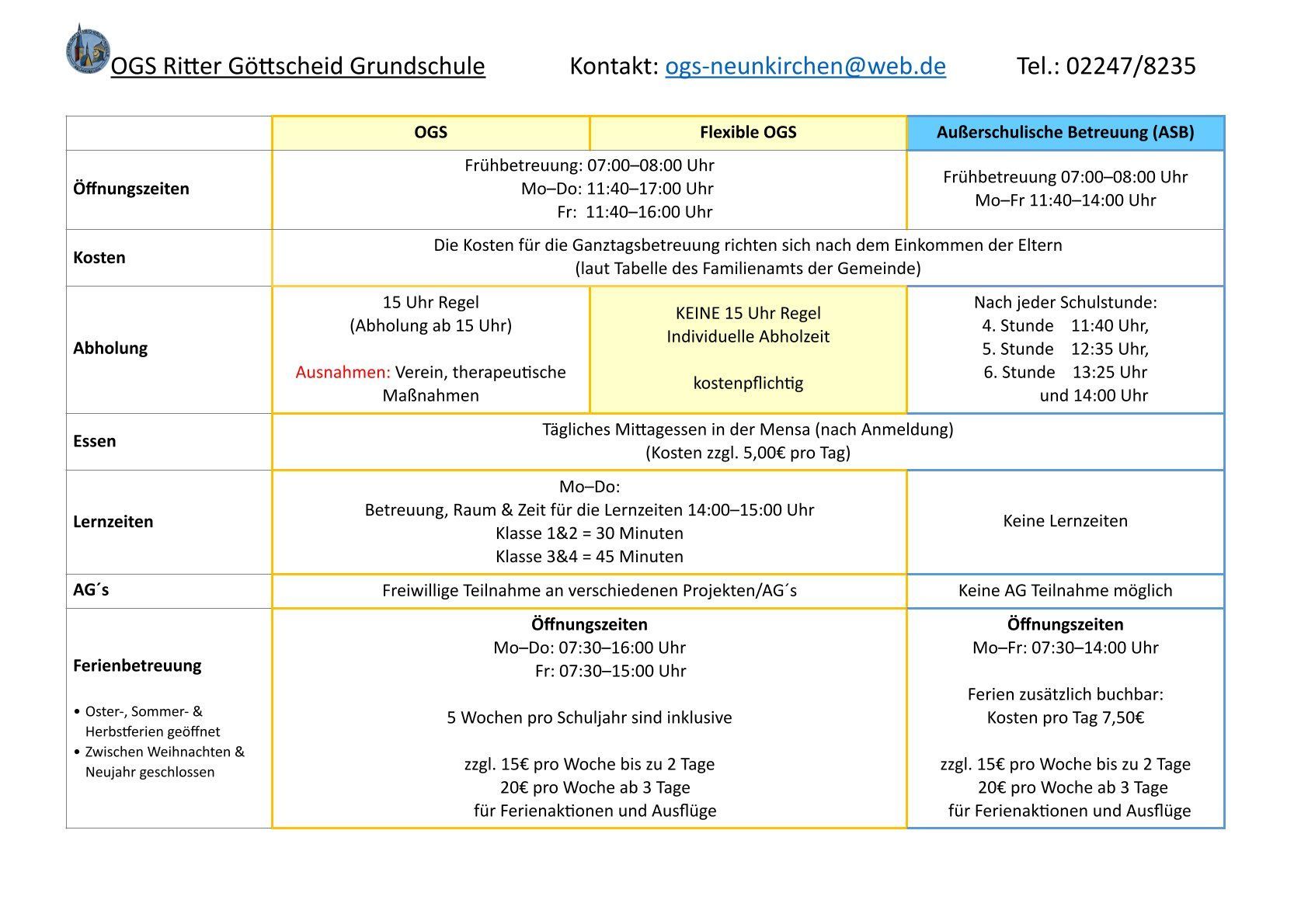 Die Ferienbetreuung ist für Kinder der OGS/flexiblen OGS für 5 Wochen während eines Kalenderjahres kostenfrei. Ab der 6. gebuchten Woche entstehen für Sie Zusatzkosten, die die Gemeindeverwaltung Ihnen entsprechend in Rechnung stellt.